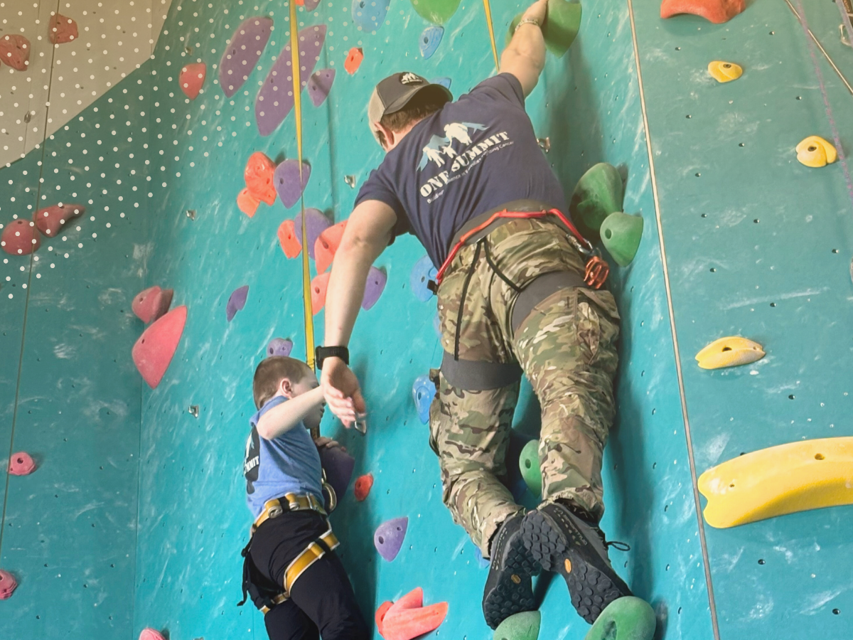One Summit is a cancer support organization whose primary approach is through an experiential learning program, Climb for Courage. At Climb for Courage, patients and siblings are matched 1:1 with a U.S. Navy SEAL mentor and are guided through rock-climbing challenges, derived from a curriculum on Posttraumatic Growth.